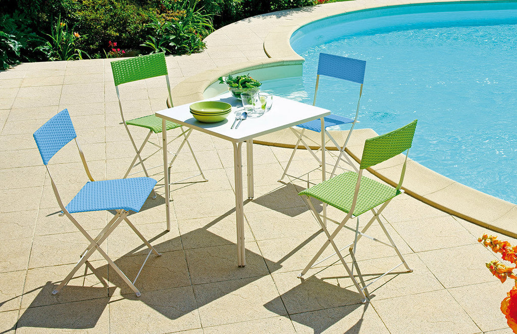 Quadratischer Gartentisch 70x70 cm aus elfenbeinfarbenem Vorghini-Bisceglie-Eisen