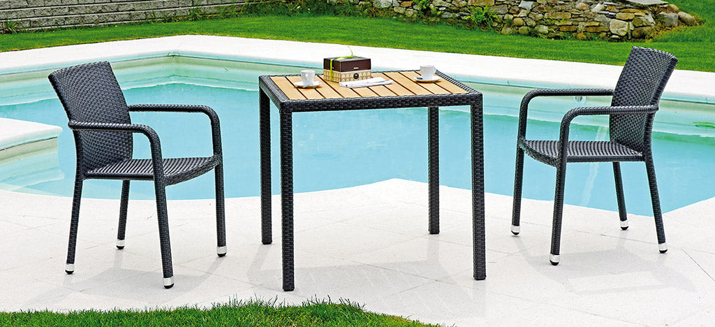 Feststehender quadratischer Gartentisch 80 x 80 cm aus Wicker Vorghini Orleans Wengé