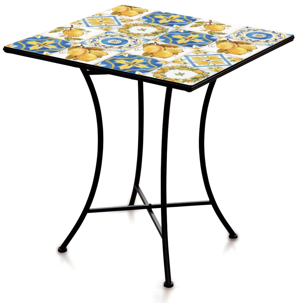 Quadratischer Gartentisch 83x83 cm aus Schmiedeeisen mit Soriani Toscana Black Mosaic