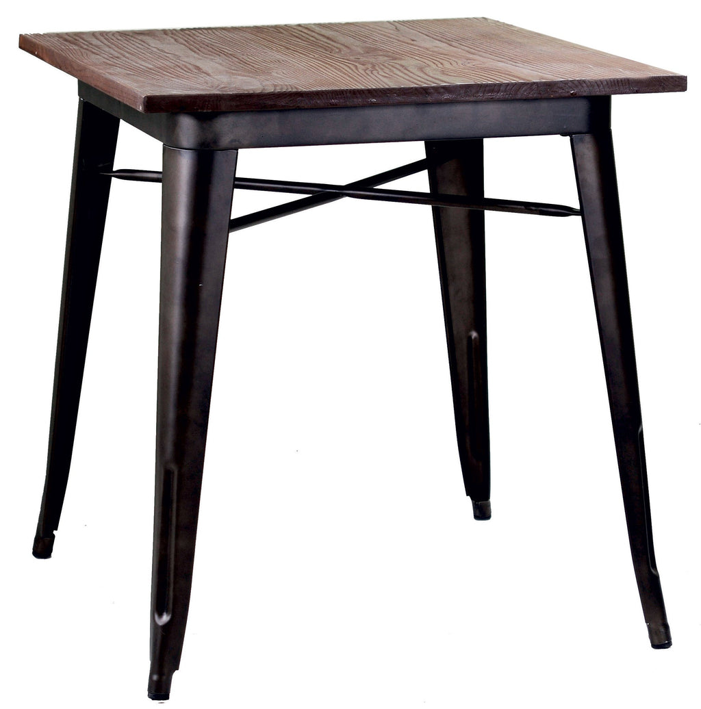 Quadratischer Tisch mit Metallplatte aus braunem Adami-Bristol-Holz