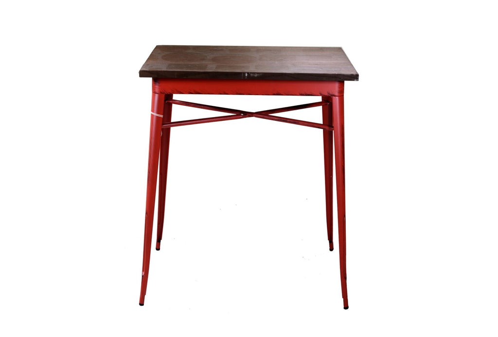 Quadratischer Metalltisch mit Adami Bristol Red Wood Top