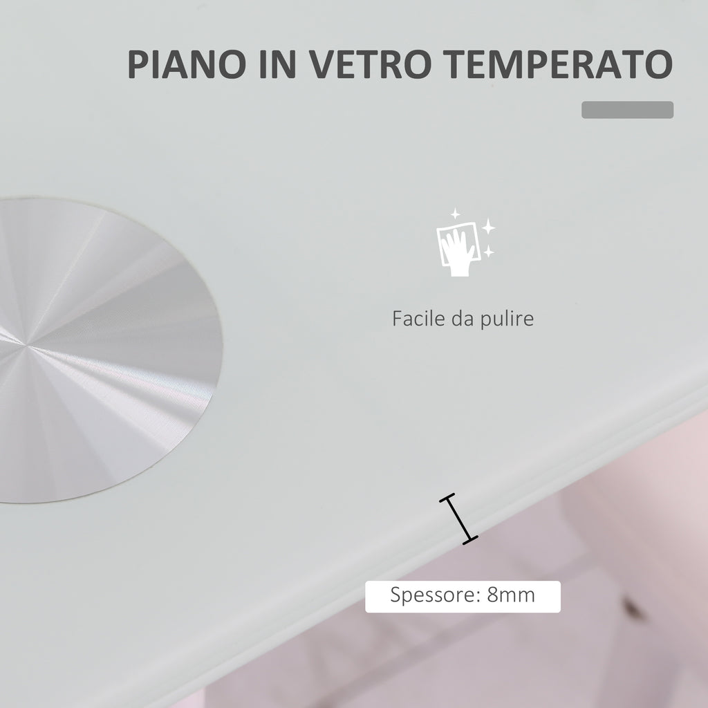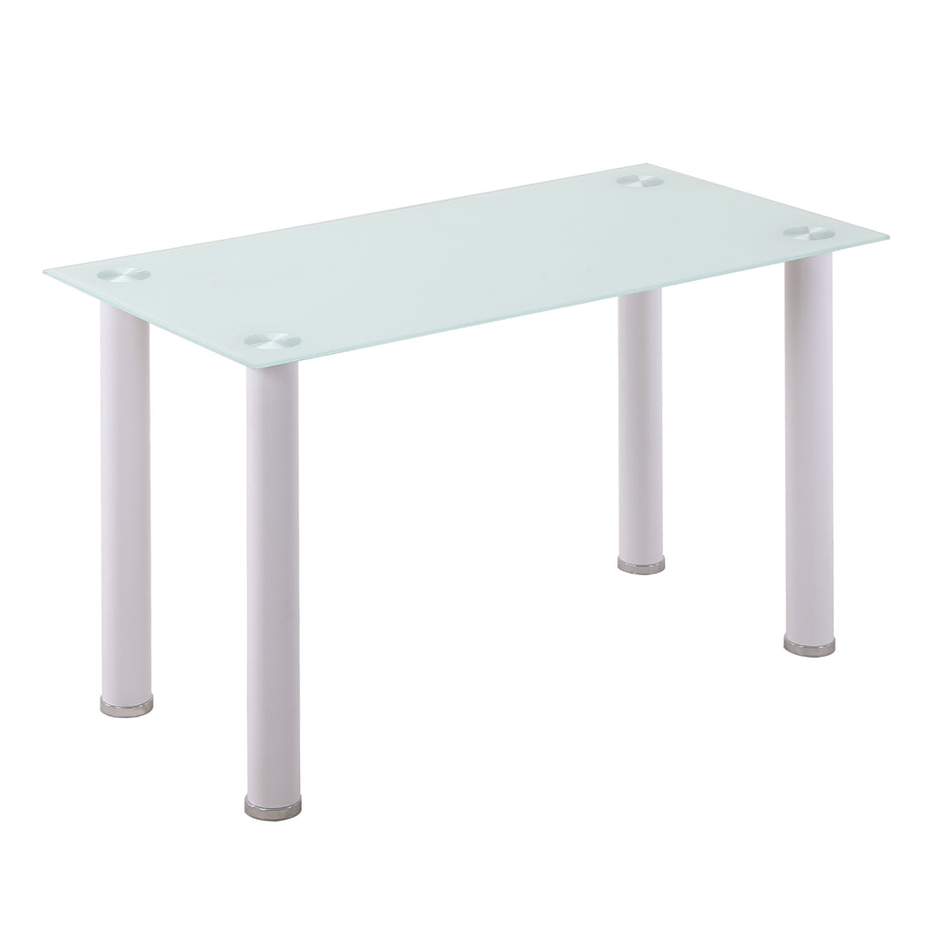 Rechteckiger Tisch 120 x 60 x 75 cm aus Metall und weißem gehärtetem Glas