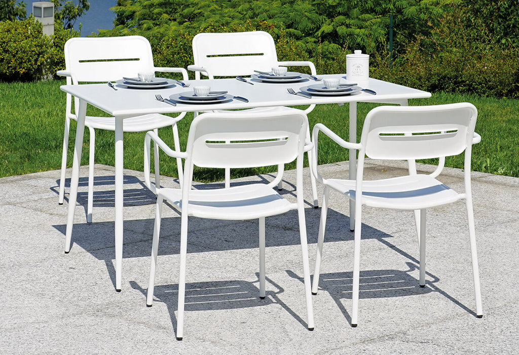 Rechteckiger Gartentisch 140x80 cm aus weißem Vorghini Messina Eisen