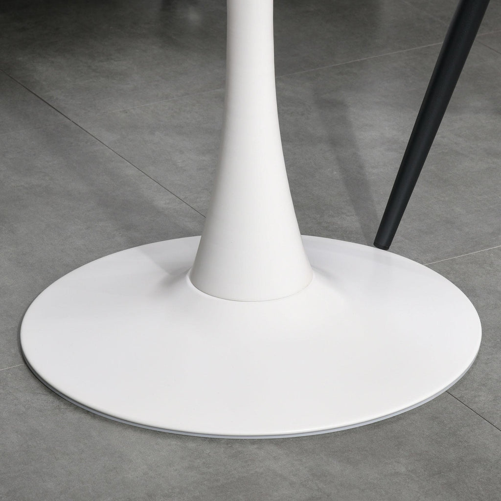 - MODERNER TISCH: Dank der großen runden Tischplatte, dem zentralen Bein in Sanduhrform und der weißen Oberfläche mit "Marmoreffekt".