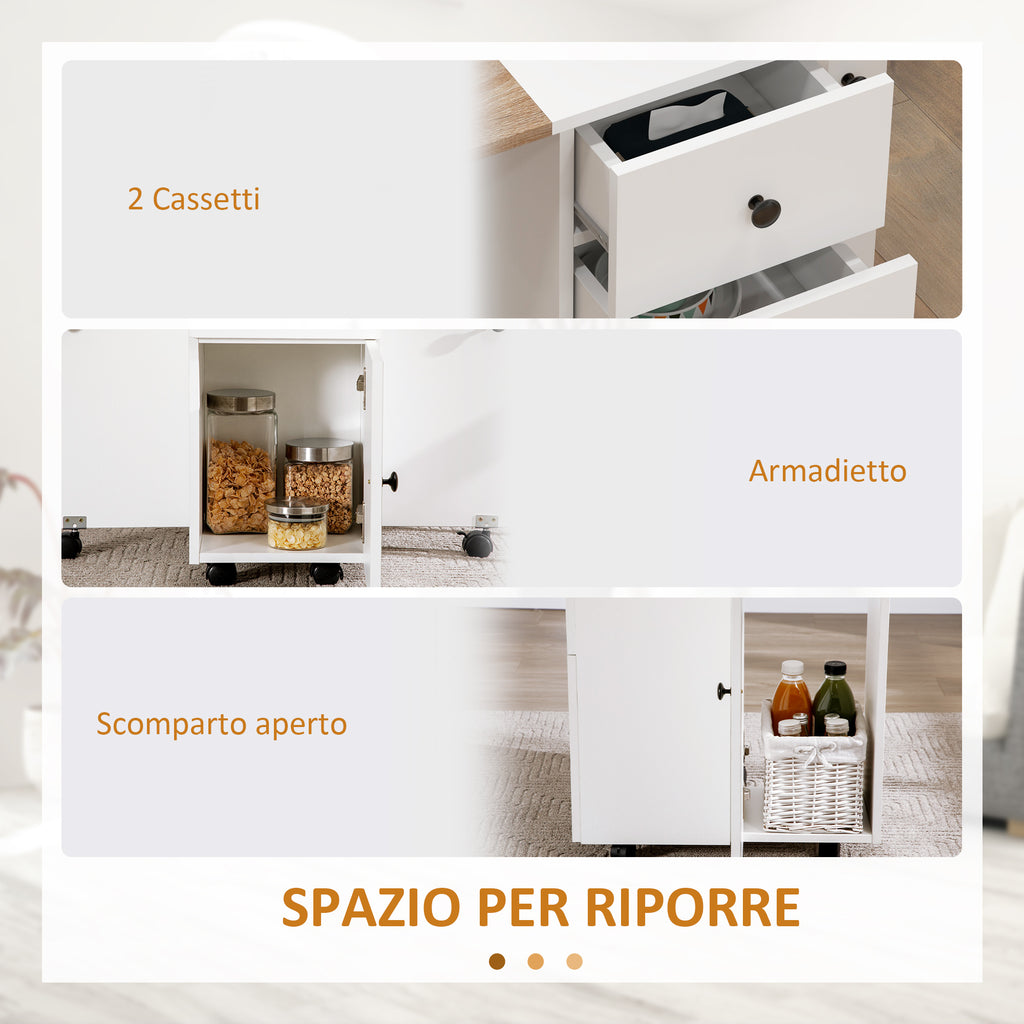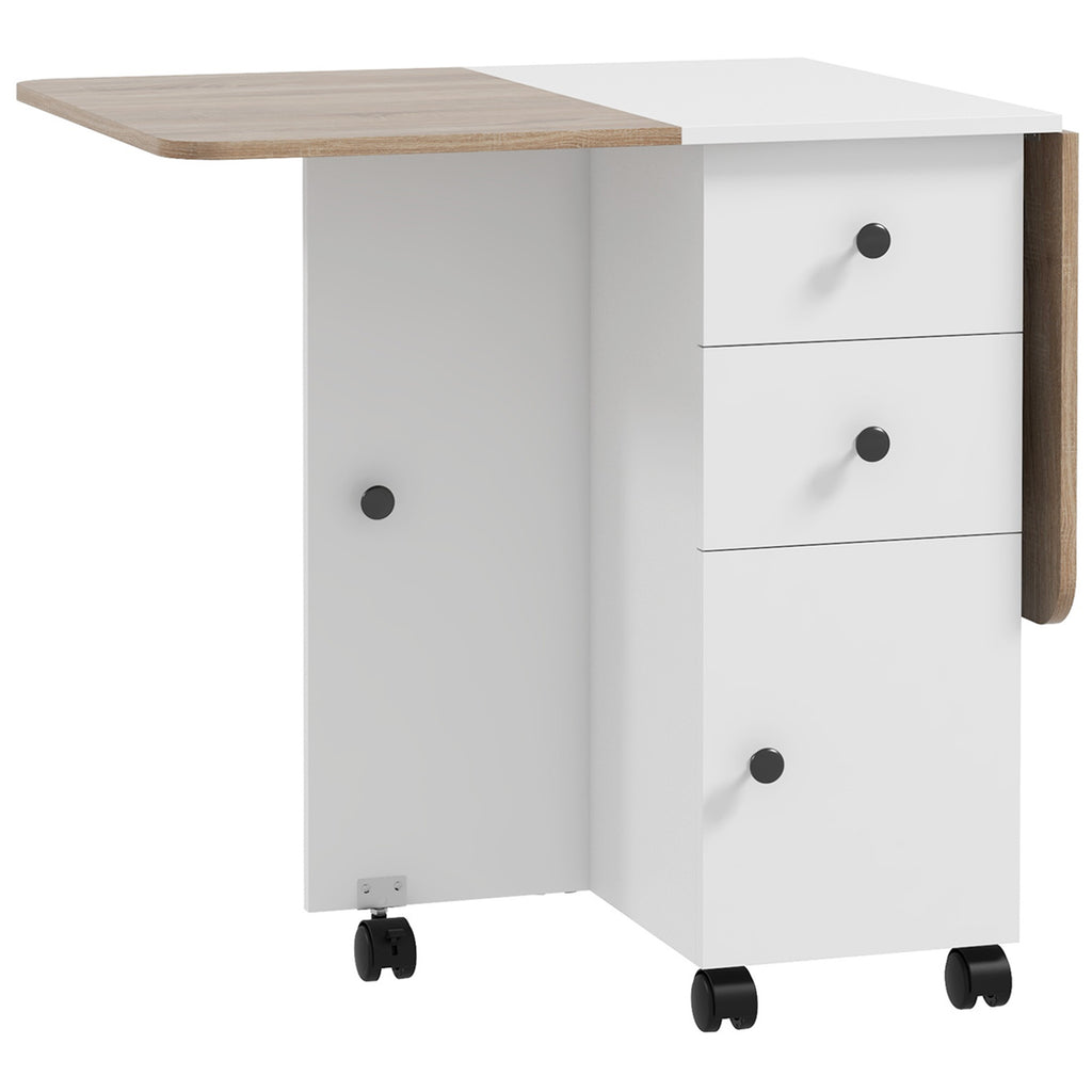 Tavolo Salvaspazio Pieghevole a Ribalta con 2 Cassetti e Armadietto 120x60x76,5 cm in Legno Bianco e Rovere
