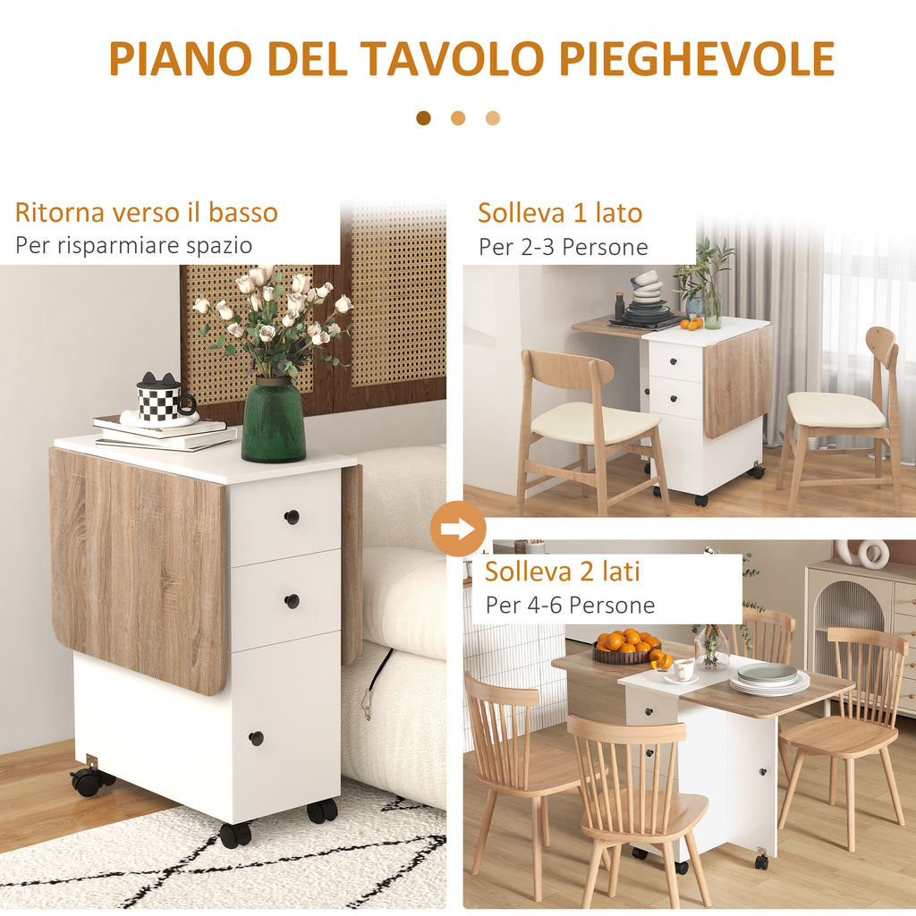 - TAVOLO PRATICO: Il tavolo estensibile è dotato di alcuni cassetti per riporre posate e tovaglioli. Le 6 ruote, di cui 4 con freno, permettono di spostarlo facilmente.