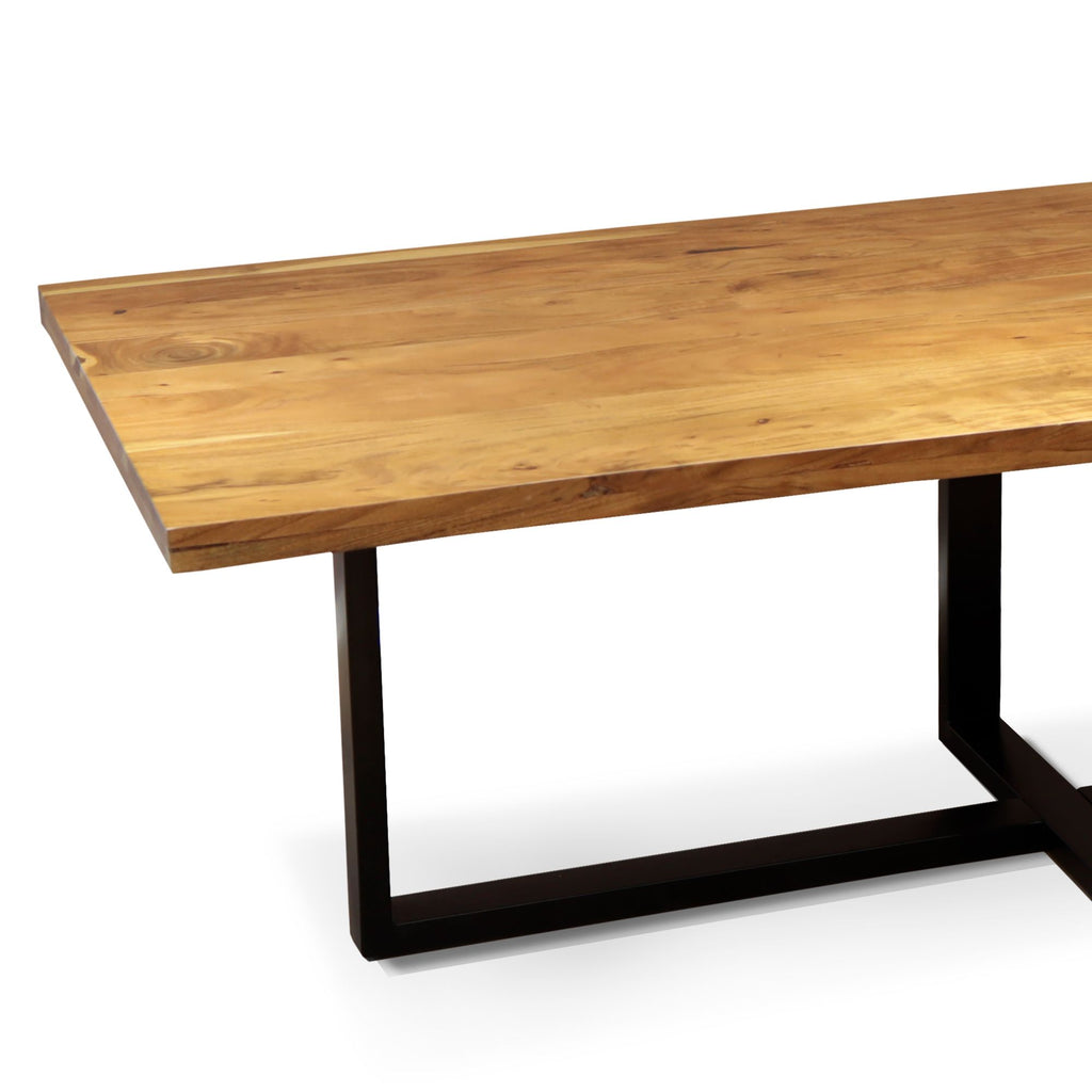 Un tavolo fisso davvero unico e particolare nel suo genere. L'alternarsi del legno di rovere e del metallo conferisce alla struttura un design armonico e ricercato. Le gambe scure a forma di croce si collocano piacevolmente al di sotto del piano rettangolare, esaltato dalle venature naturali tipiche del legno. Il suo stile vintage e i suoi materiali di recupero lo rendono ideale per i più sensibili al tema della sostenibilità e al rispetto dell'ambiente, ma che al contempo non vogliono rinunciare alla preziosità degli elementi d'arredo. Funzionale e accattivante, il tavolo Strong sarà il perfetto eye catcher di ogni living, sala da pranzo o cucina. Per la cura del prodotto, è consigliabile utilizzare un panno di cotone leggermente umido, non abrasivo.