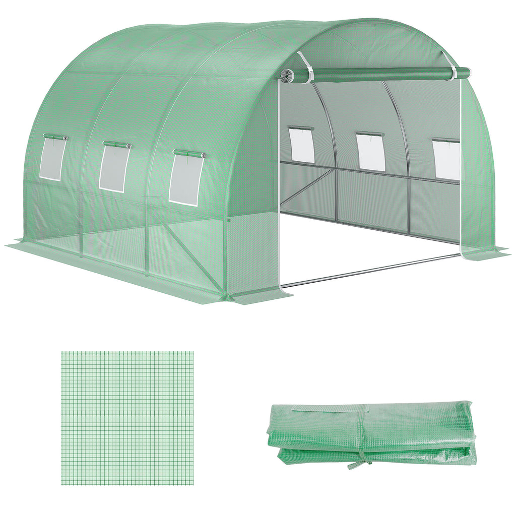 Telo per Serra 3x3x2 m con 6 Finestre Porta Avvolgibile e Bordi Interrati in PE Verde