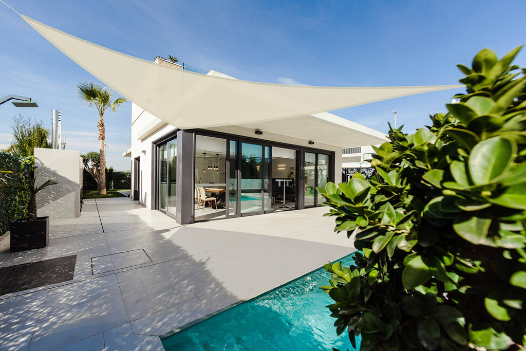Dreieckiges Sonnensegel 3,6x3,6x3,6m aus Ecru Polyester