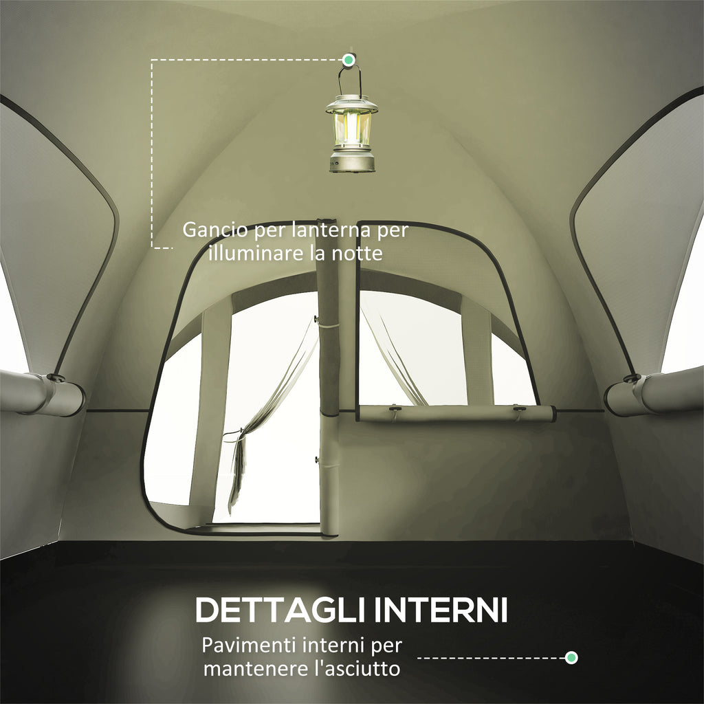 Tenda da Campeggio 4 Posti Impermeabile con Zona Notte e Zona Giorno 430x300x190 cm in Poliestere Grigio