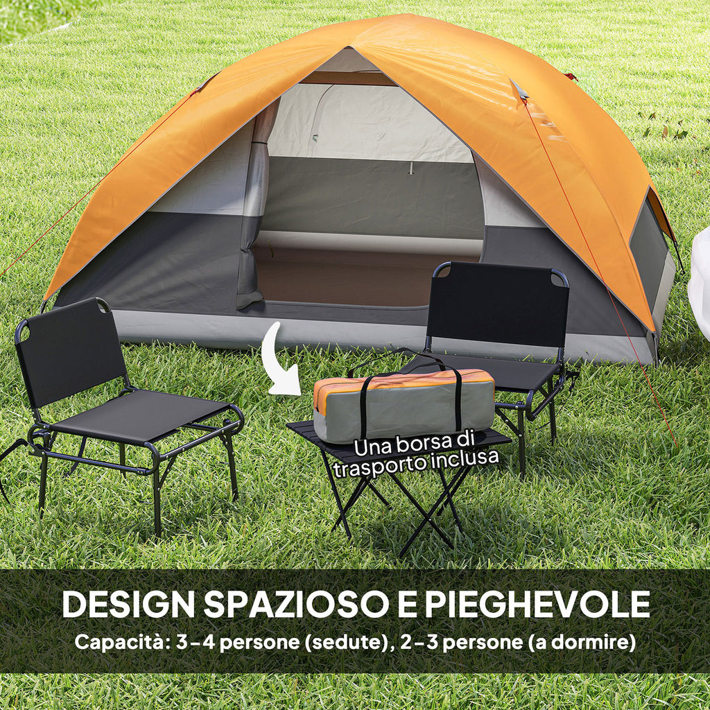 Tenda da Campeggio per 3 Persone Impermeabile 205x275x135H cm con Tasche e Gancio per Lanterna Arancione