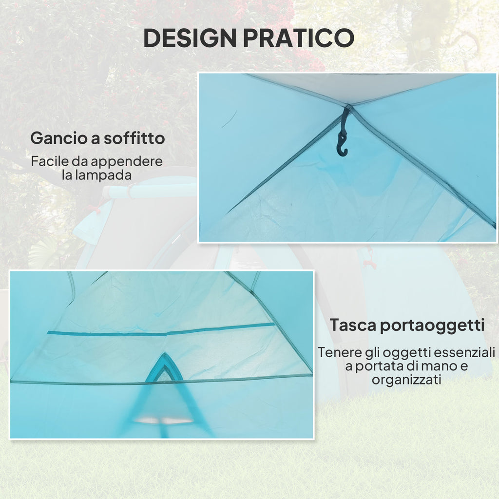 Tenda da Campeggio per 3 Persone Impermeabile con Camera e Veranda Azzurro