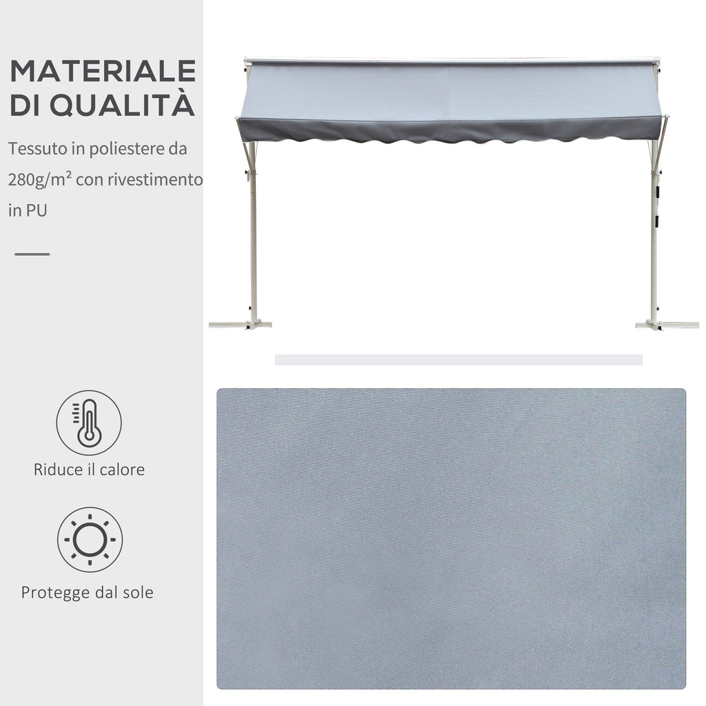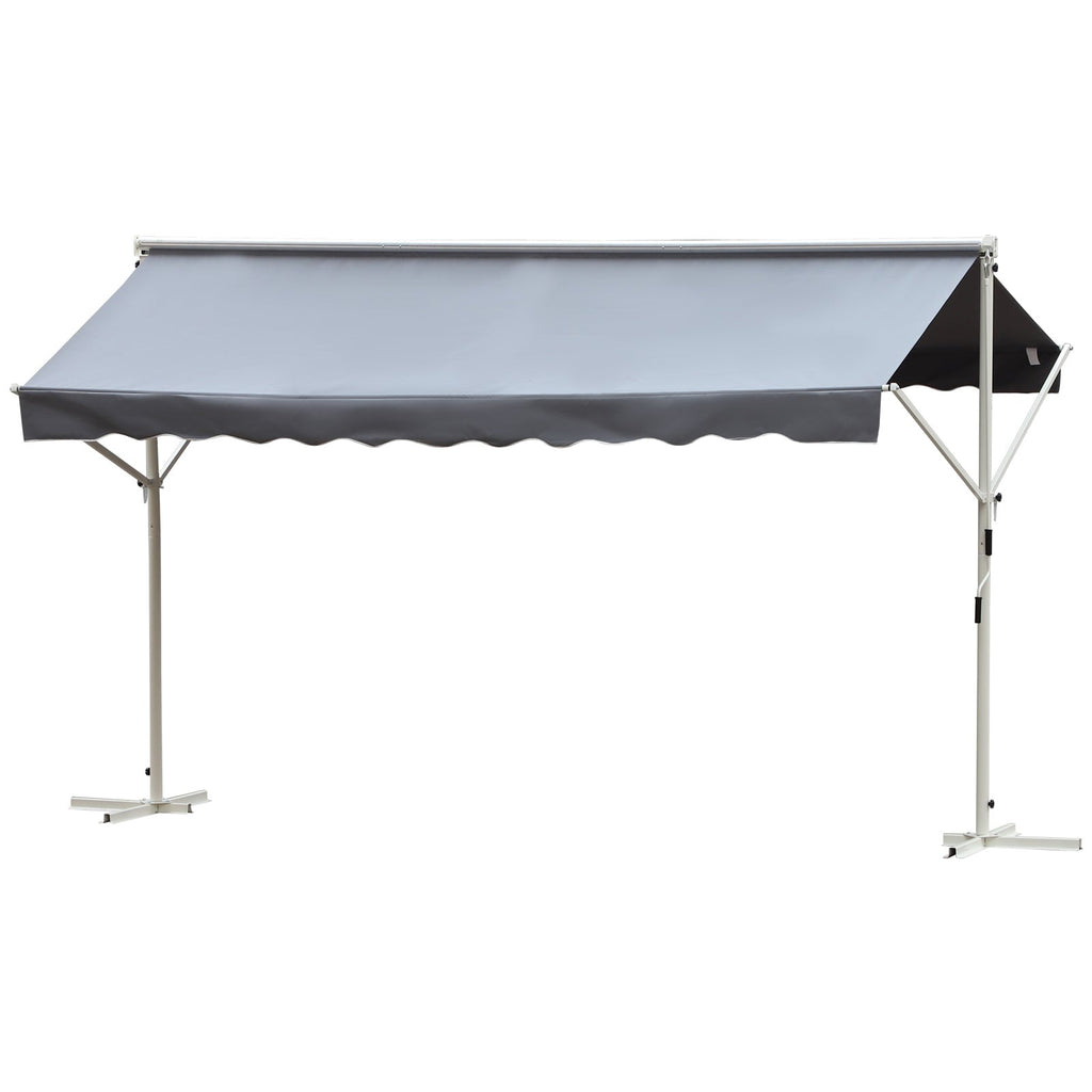 Diese geräumige freistehende Markise ist die ideale Lösung, um Ihren Garten an Sommertagen vor der Sonne zu schützen. Es ist einfach zu montieren und Sie müssen nur die Kurbel verwenden, um die Markise zu öffnen und zu schließen. Schützt Sie effektiv vor der Sonne dank der PU-beschichteten Polyester-Markise. Die hochwertige Metallstruktur sorgt für eine lange Lebensdauer und Widerstandsfähigkeit dieser Außenmarkise!