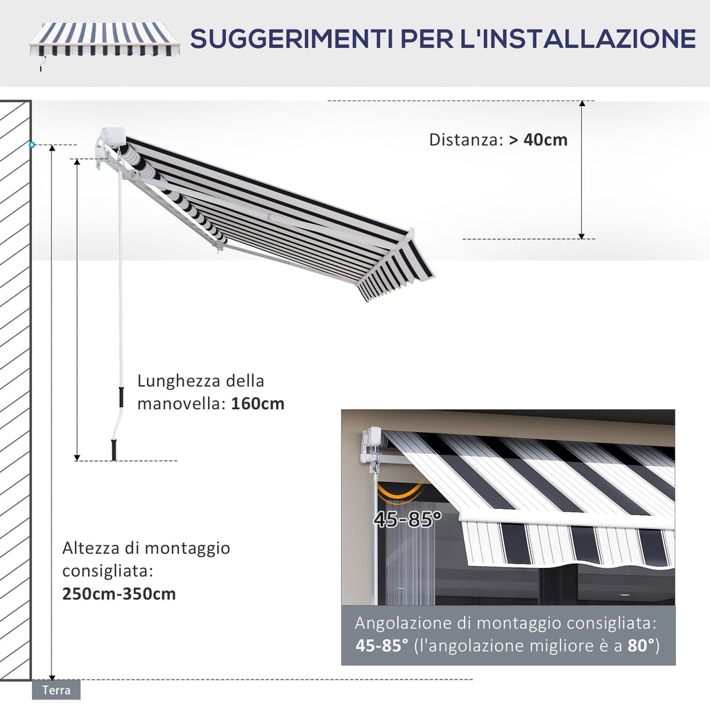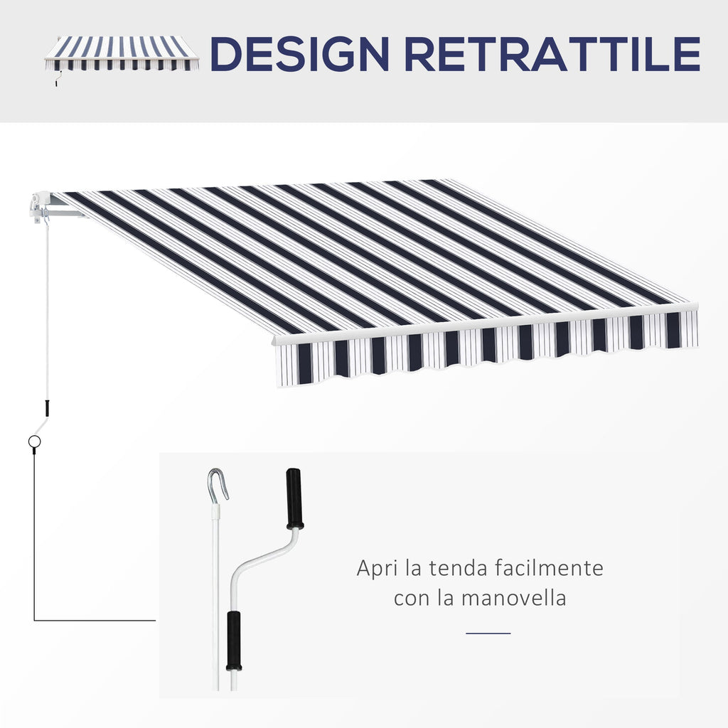 Blau-weiß gestreifte manuelle Wand-Rollmarkise 2,5 x 2 m