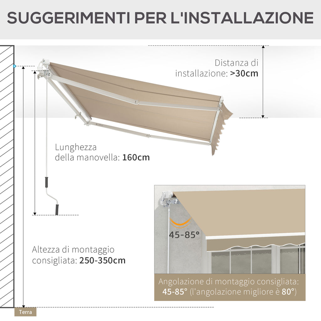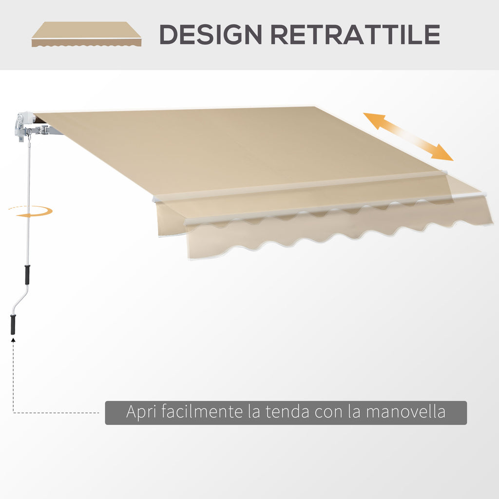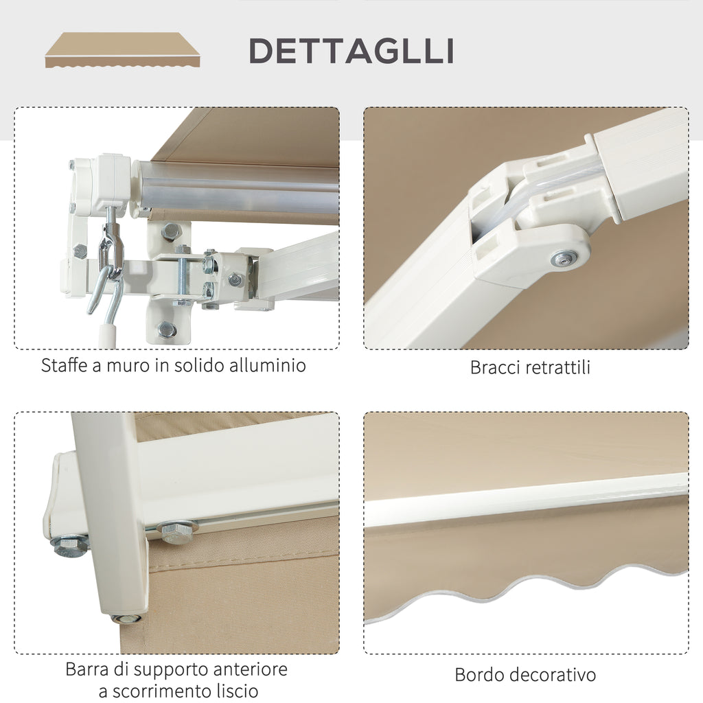 Beiges, wasserdichtes, manuell an der Wand montiertes, aufrollbares Sonnenschutzdach, 2,5 x 2 m