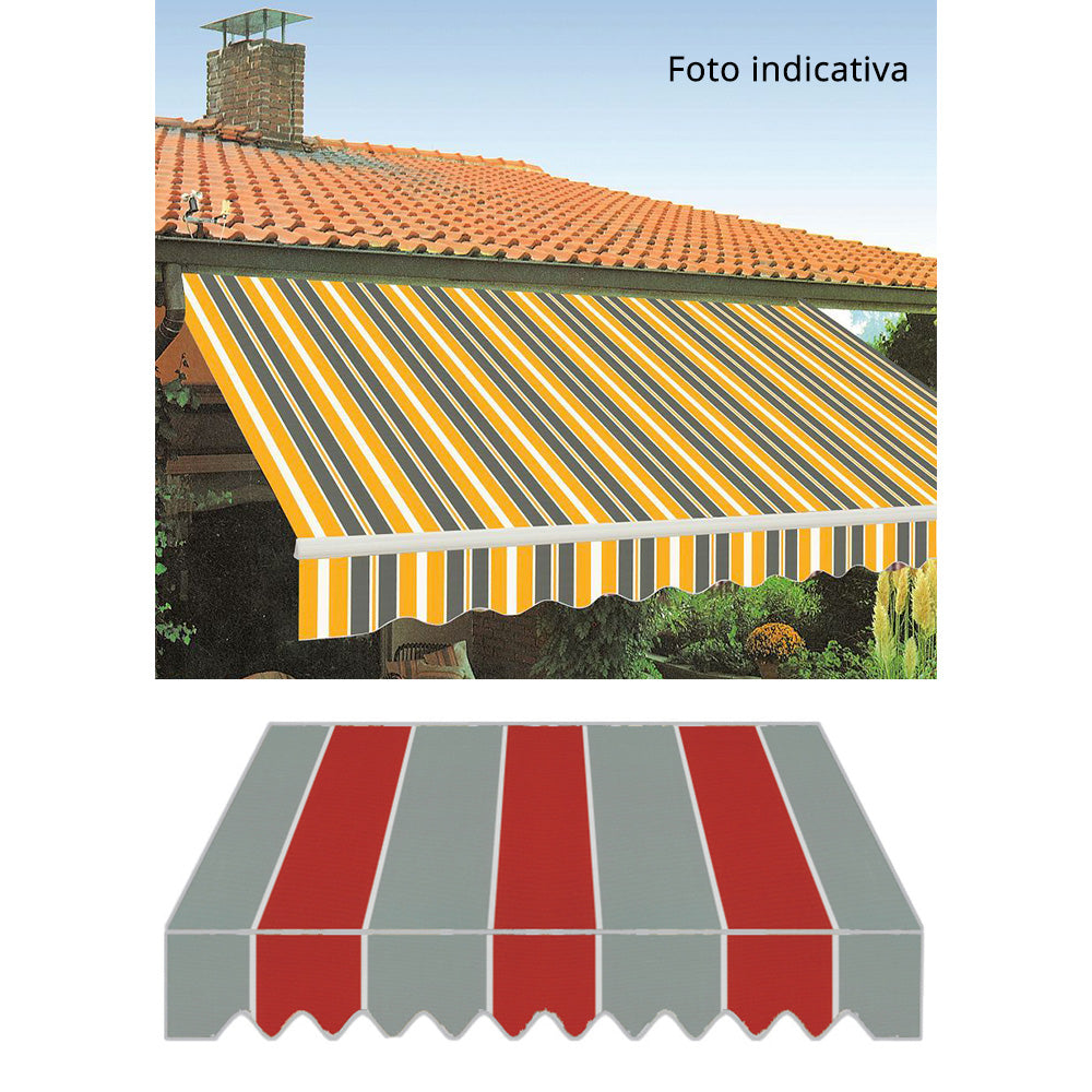 Markise mit einziehbaren Armen, Aluminiumstruktur und 280 g/m2 Polyestergewebe. Zeichnung P3011.