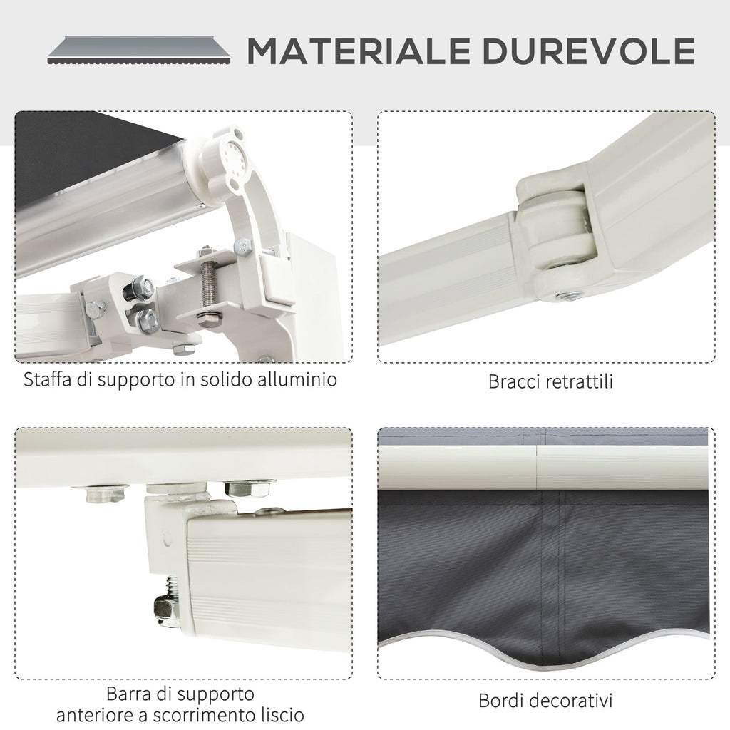 Tenda da Sole da Esterno 250x200 cm Avvolgibile Manualmente in Alluminio e Poliestere Grigio e Bianco