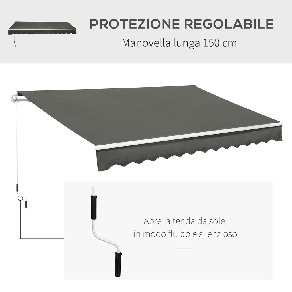 Tenda da Sole per Esterno Avvolgibile a Bracci 350x250 cm con Apertura a Manovella Grigio
