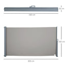 Seitliche Sichtschutzmarkise für den Garten 3x1,60m in Aluminium und grauem Stoff