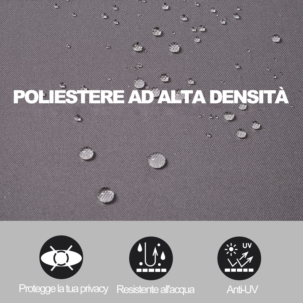 Brauchen Sie mehr Privatsphäre? Möchten Sie sich vor der Sonne schützen? Mit dieser Seiten- und Rollmarkise gewinnen Sie Ihre Privatsphäre zurück und schützen Ihre Außenbereiche vor Sonneneinstrahlung und Wind. Mit einem Aluminiumrahmen und wasserdichten Vorhängen aus Polyestergewebe gebaut, ist es ein widerstandsfähiges Produkt, ideal für die Terrasse oder den Garten. Der Aufrollmechanismus ist einfach zu bedienen und gibt Ihnen die Möglichkeit zu entscheiden, ob und wann Sie das Rollo verwenden möchten. Genießen Sie Ihre Tage im Freien mit zusätzlichem Komfort!