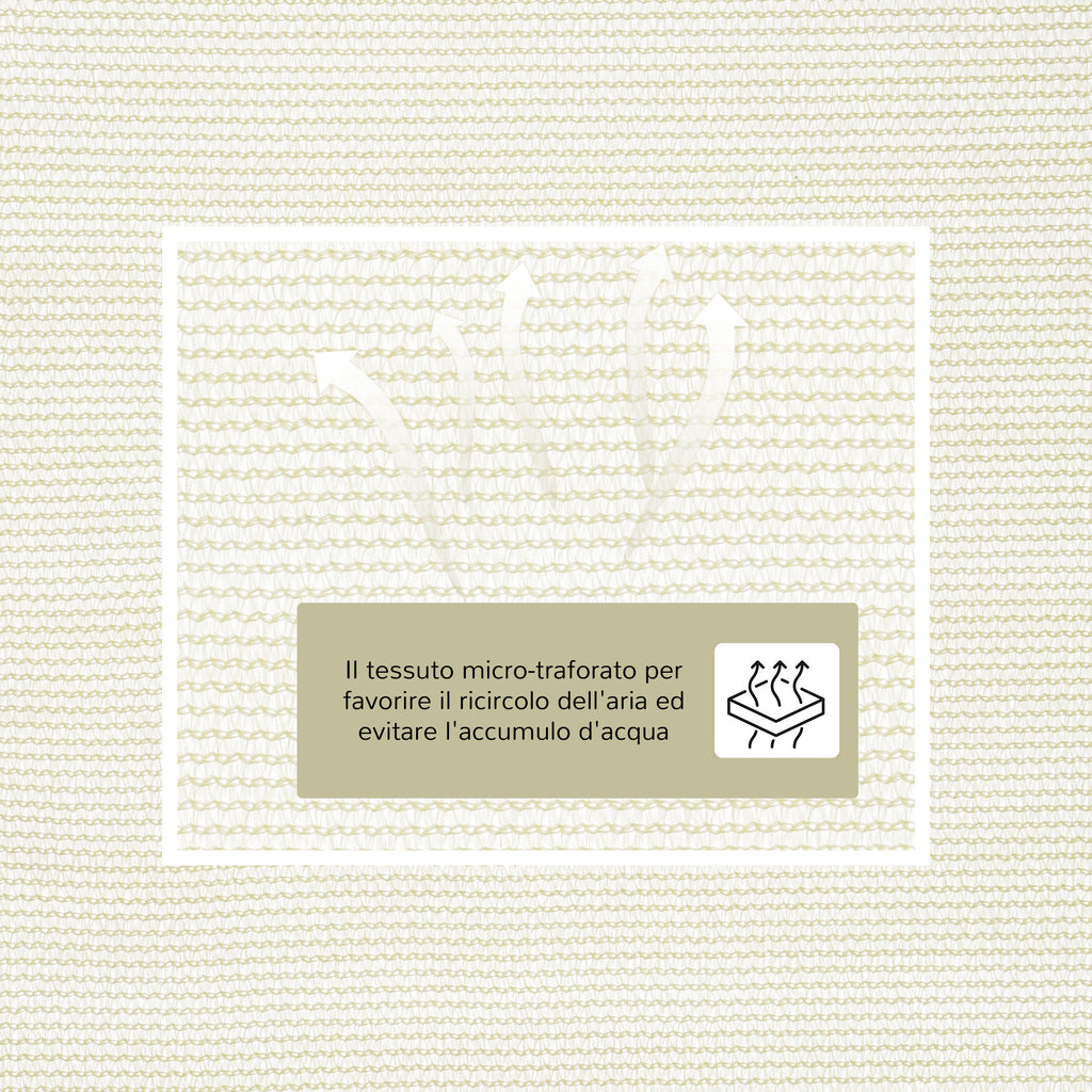 Unser Sonnensegel aus leichtem und wasserabweisendem Stoff ist perfekt, um einen fantastischen schattigen Bereich zu schaffen, ideal, um an den heißesten Tagen eine Erfrischung zu finden.
