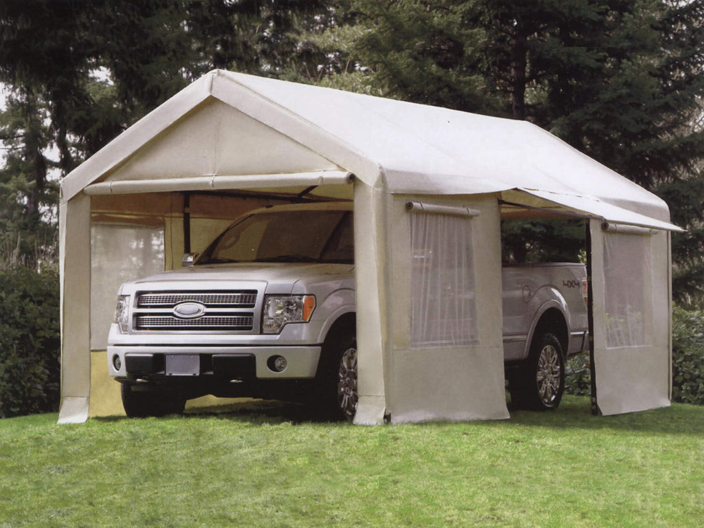 PKW-Garagenpavillon mit Seitenwänden und Seitenvordach.