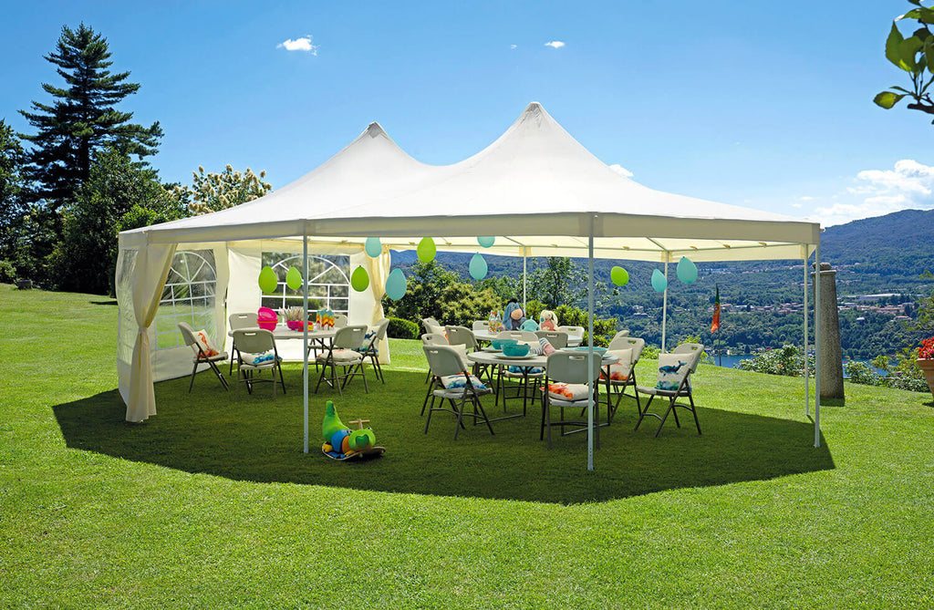 Partyzelt 9x6,5m für Hochzeitsfeiern in Iron Vorghini Partyzelt Ecru