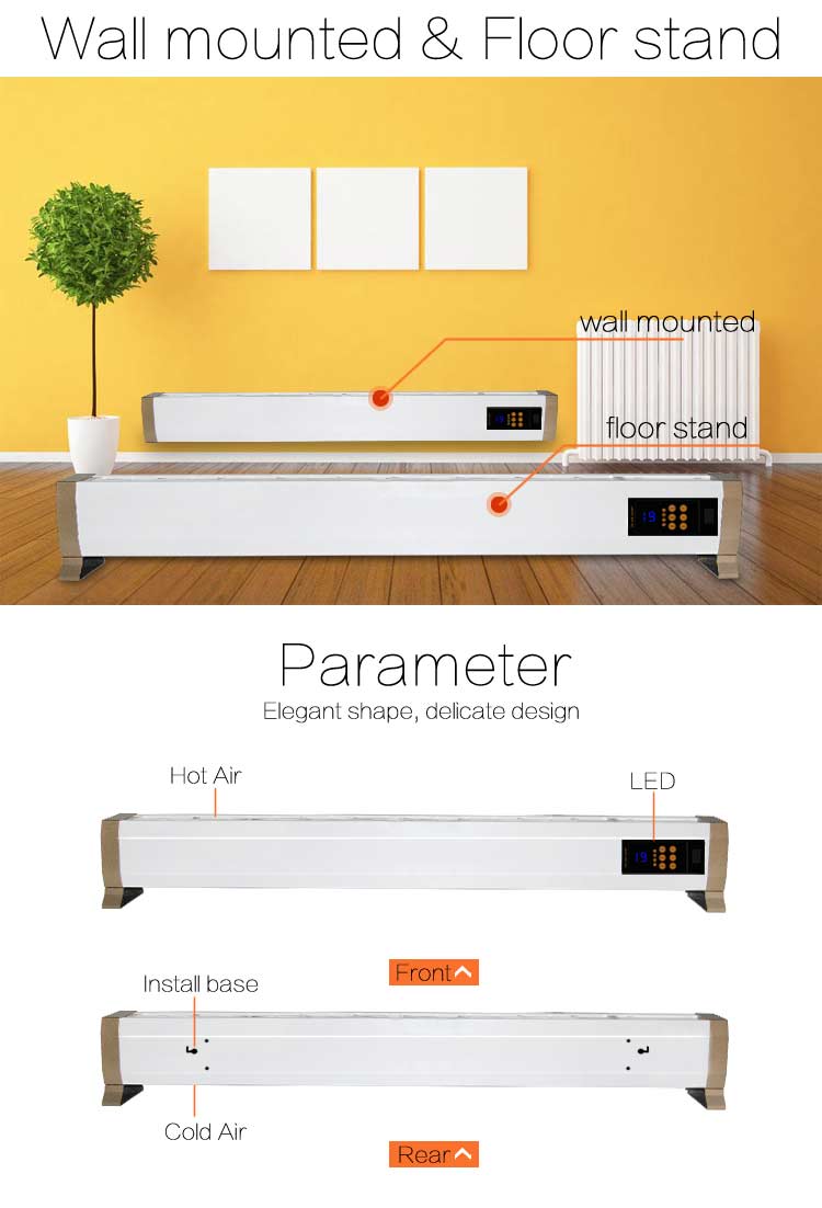 Dieser Konvektor mit Fernbedienung ist konzipiert und besonders geeignet zum Beheizen von Wohnzimmern, Schlafzimmern, Restaurants, Büros, Hotels, Studios, Yogaräumen, Tanzlokalen, Fitnessstudios usw.