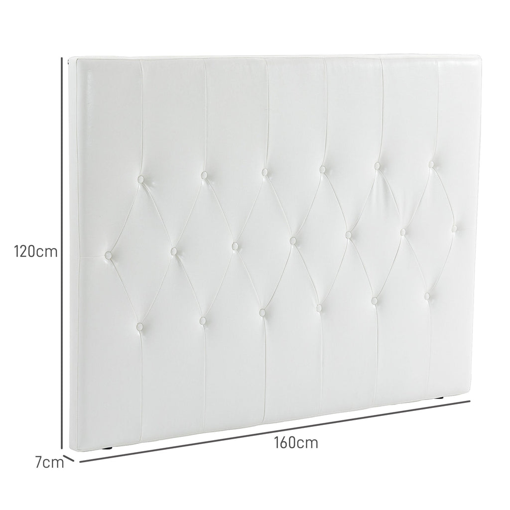 Testiera Letto Matrimoniale Imbottita Design a Bottoni 160x7x120 cm in Pelle PU Bianca