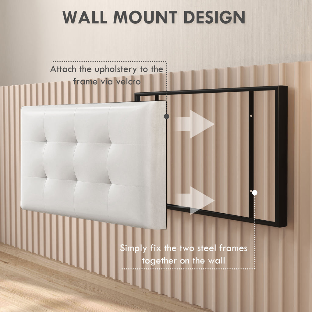 - DESIGN A PARETE: La testata letto matrimoniale è composta da 2 parti da montare a parete. È sufficiente fissare il telaio in acciaio al muro e attaccare il rivestimento con il velcro. Le viti per il montaggio sono incluse nella confezione