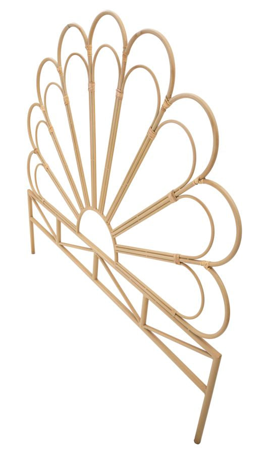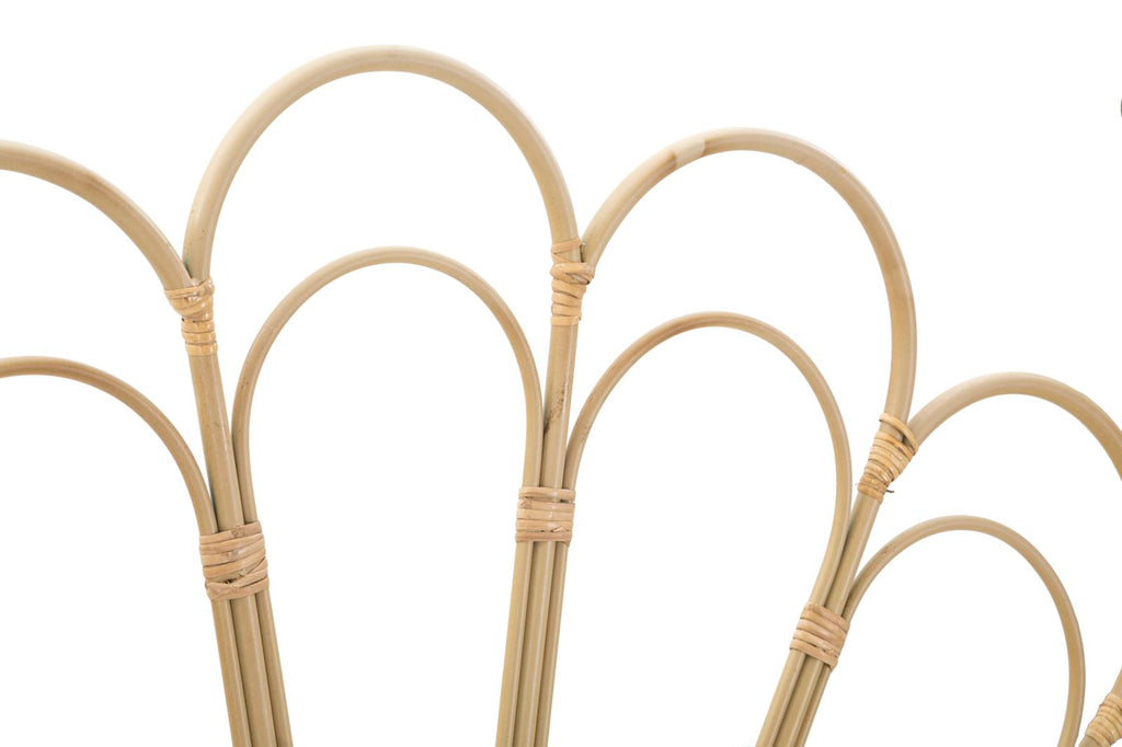 La testiera per letto proposta è realizzata in metallo resistente e presenta finiture in rattan che aggiungono un tocco di natura e calore all'ambiente. Il design arrotondato e le linee morbide richiamano elegantemente i petali di un fiore, conferendo un aspetto delicato e raffinato al letto. Questa testiera è perfetta per aggiungere un tocco di stile sofisticato e romantico alla camera da letto.