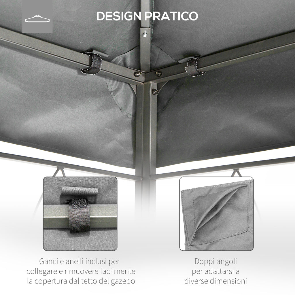 Tetto di Ricambio Impermeabile per Gazebo da Giardino 4x3m in Poliestere Grigio