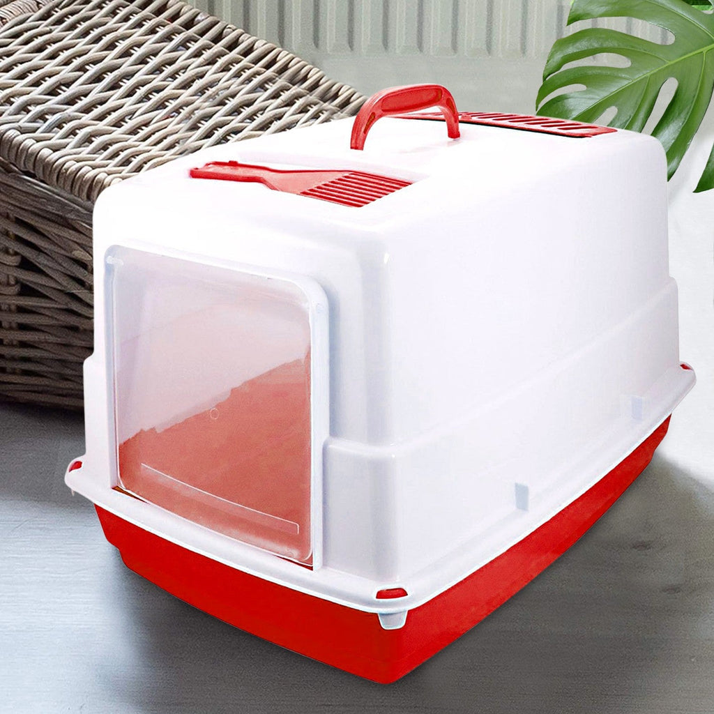 Geschlossene Katzentoilette mit Klapptür Aktivkohle 54x39x39cm Rot