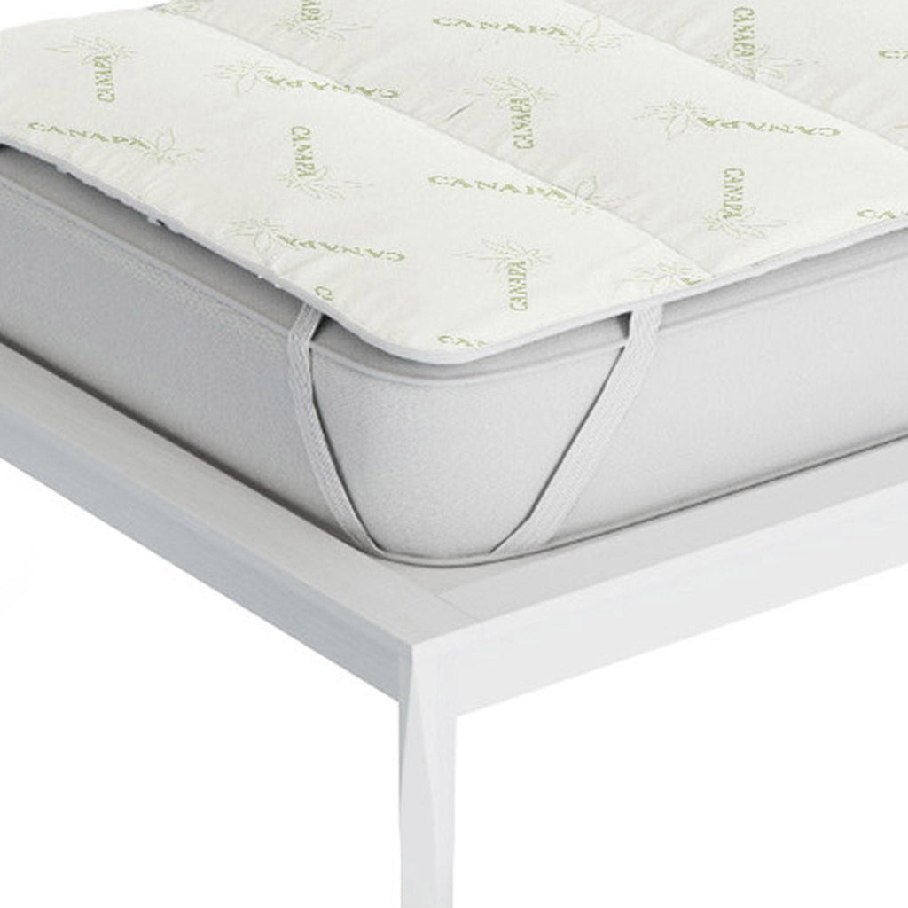 Gesteppter, gepolsterter Topper aus Polyester und Hanffaser mit hellgrünen Gummibändern