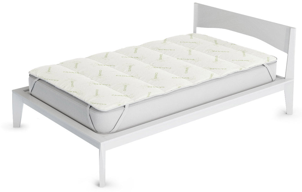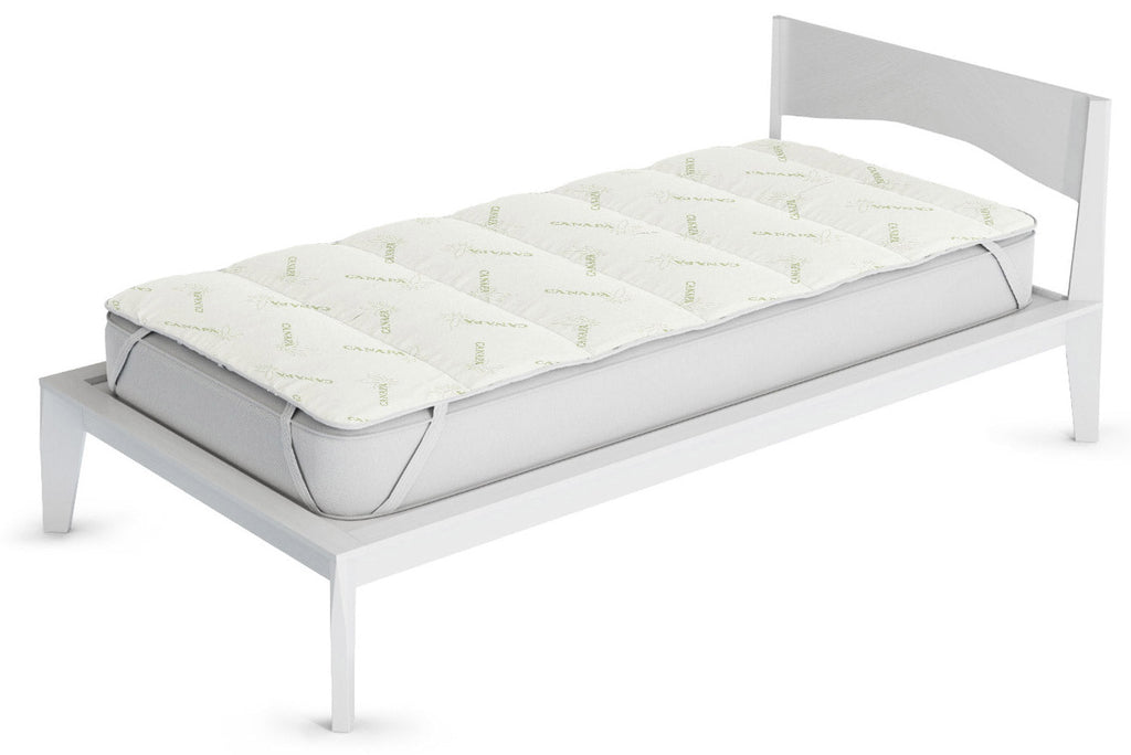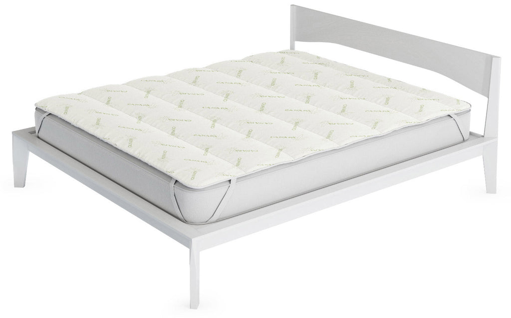 Gesteppter Topper, gepolstert mit Hanffaser, mit hellgrünen Gummibändern, verschiedene Größen