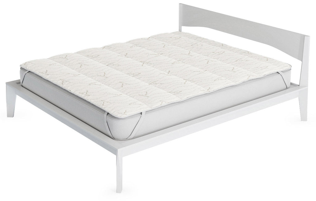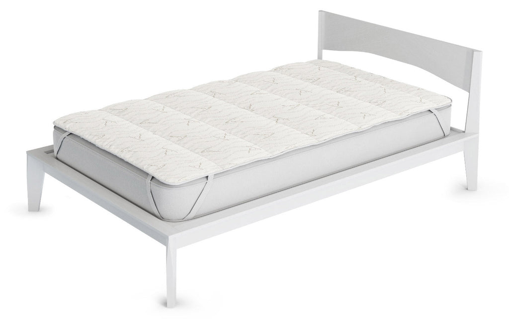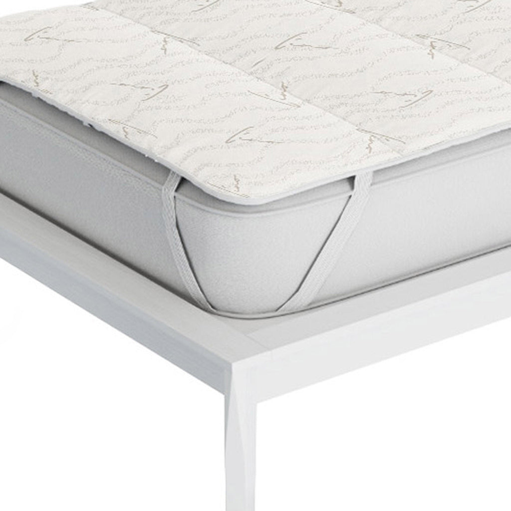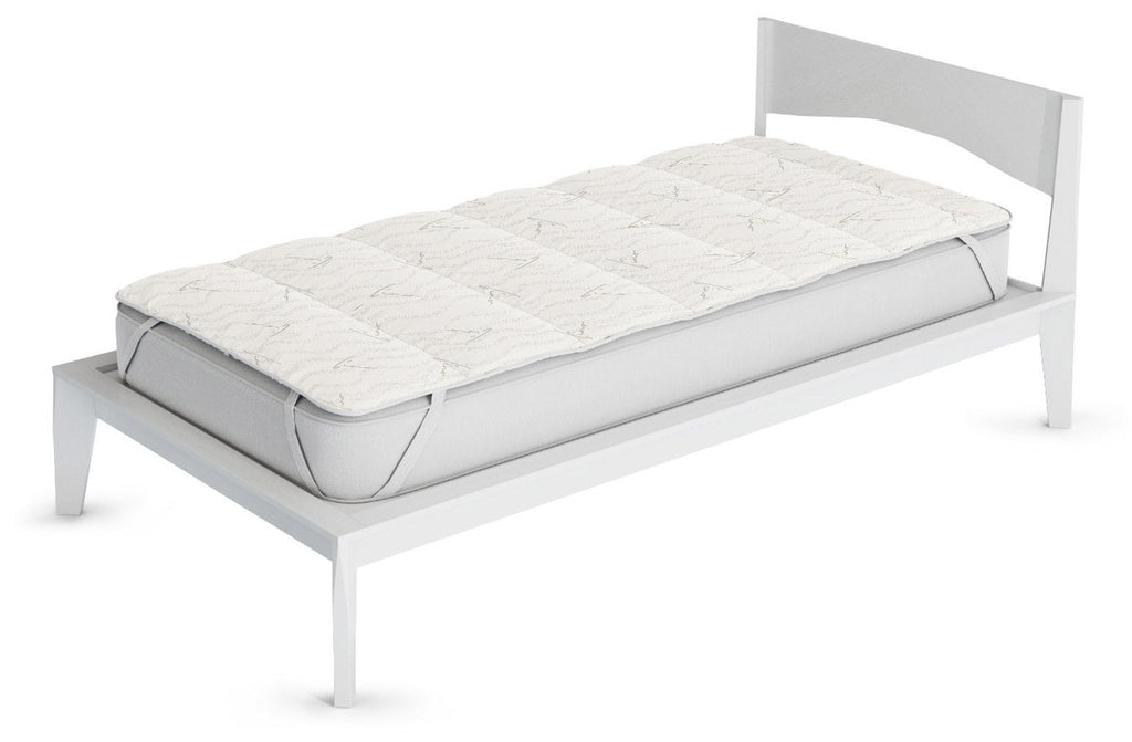 Gesteppter Topper, gepolstert in Leinenfaser mit hellgrauen Gummibändern, verschiedene Größen