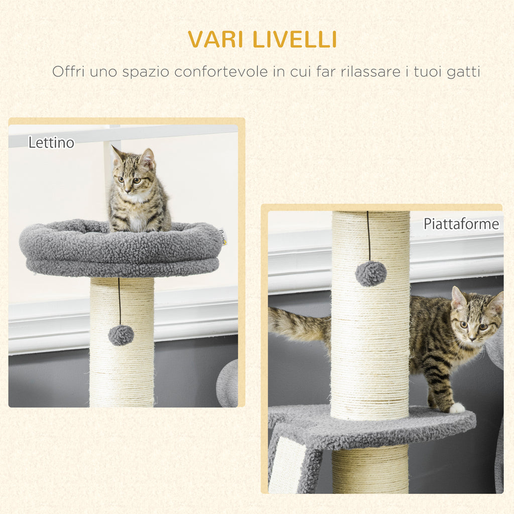 - ALLES IN EINEM: Katzen lieben es, hoch oben zu sein, um alles zu sehen, was passiert, oder um aus dem Fenster zu schauen. Dieser Kratzbaum ermöglicht es Ihren verwöhnten Kätzchen, sich auszuruhen oder zu putzen, wo immer sie möchten. Ein Kratzbaum aus Sisalseil, eine Matte, Sitzstangen, ein Bett und hängende Bälle sind für endlosen Spaß enthalten