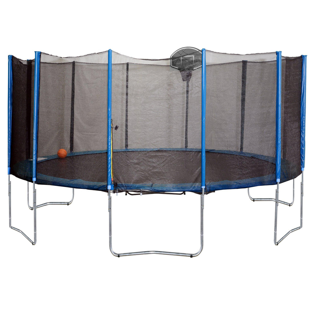 Revolutionieren Sie Ihr Training mit diesem Trampolin ! Viel Spaß beim Basketballspielen und Experimentieren mit neuen Stunts in absoluter Sicherheit : Dank des lebensrettenden Netzes und der gepolsterten Pfosten müssen Sie sich keine Sorgen machen! Auch perfekt für Kinder, das Trampolin