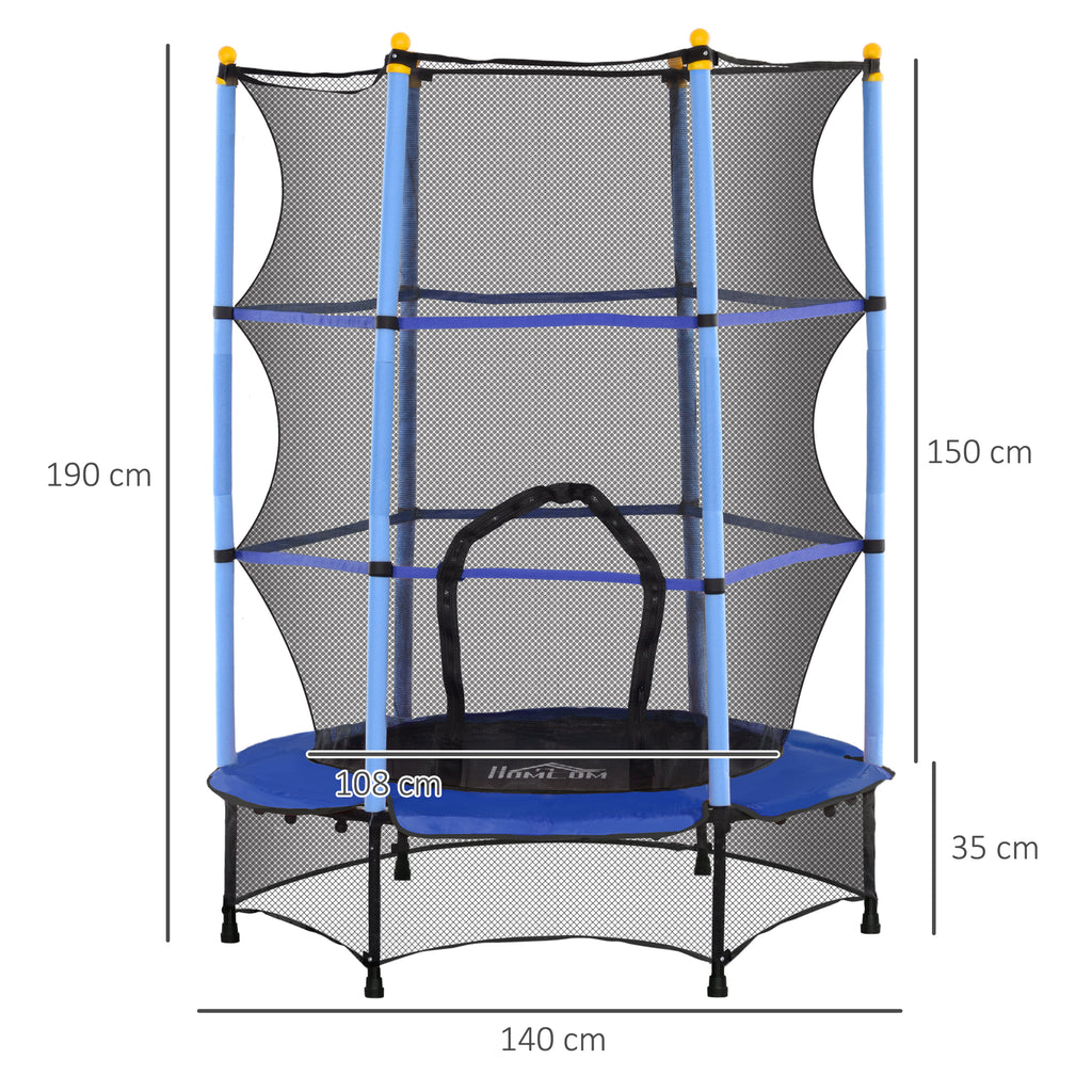 Trampolino Elastico per Bambini da 3 Anni Ø140 cm con Rete di Protezione Blu e Nero