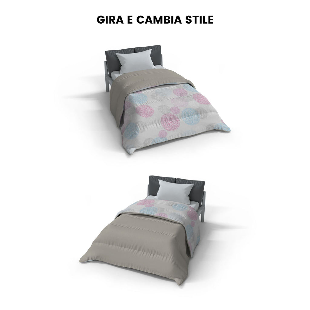 Zweifarbig bedruckte Winterdecke, Doubleface. Wattierung 300 Gramm, Made in Italy mit Oeko-Tex-Zertifizierung, die den Respekt vor der Natur und die vollständige Abwesenheit von Schadstoffen während des gesamten Produktionsprozesses garantiert.