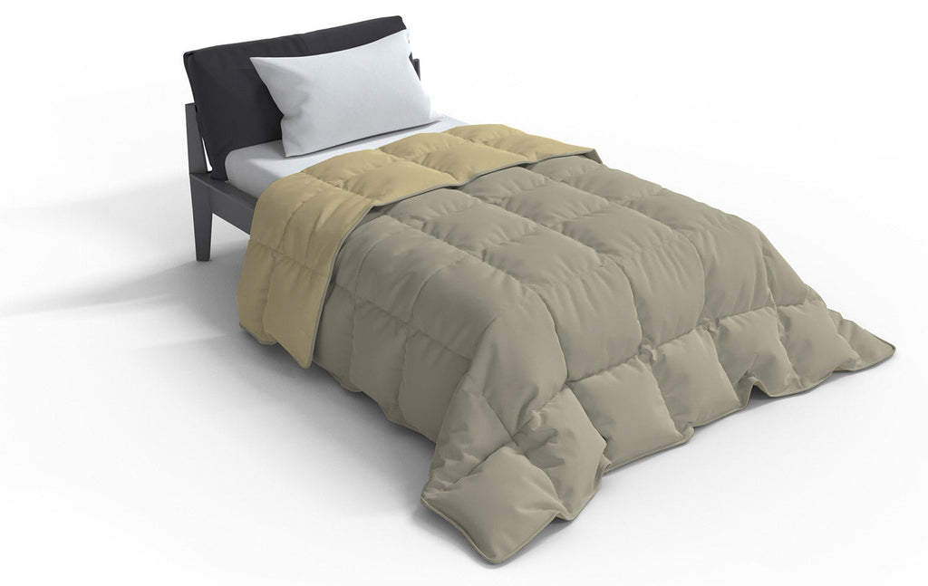 Zweifarbige Winterdecke, wendbar mit 300-Gramm-Wattierung. Hergestellt in Italien mit Oeko-Tex-Zertifizierung, die den Respekt vor der Natur und die vollständige Abwesenheit von Schadstoffen während des gesamten Produktionsprozesses garantiert.