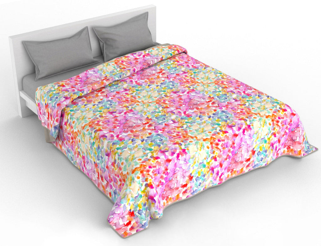 Steppdecke 1 anderthalb Quadrate 100gr mit Frühlings-Mikrofaserdruck