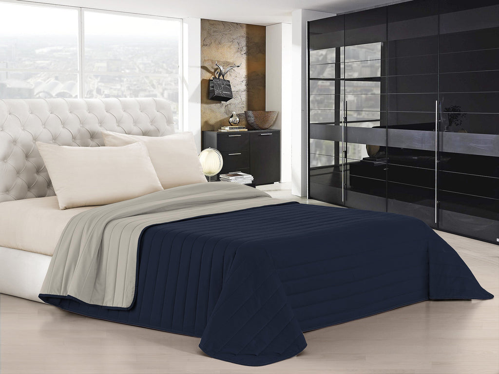 Doppelseitige Steppdecke 100 g aus Mikrofaser in Dunkelblau/Hellgrau