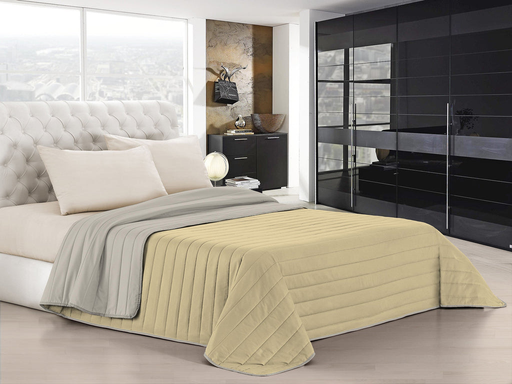 Doppelseitige Steppdecke 100gr in cremefarbener/hellgrauer Mikrofaser