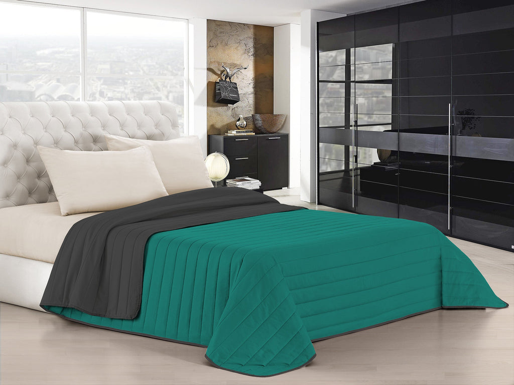 Einfarbige zweifarbige Steppdecke aus sehr weicher hypoallergener Mikrofaser mit " Pfirsichhand "-Behandlung. Unsere Steppdecken waren schon immer ein Synonym für Qualität und Schönheit. Die Verwendung der besten Materialien und die hypoallergene Polsterung machen sie zu einem Produkt von höchster Qualität. Ultraweiche hypoallergene Mikrofaser einfarbig ( reversibel ) mit Behandlung, die ihr einen samtigen Griff verleiht und ihr ein größeres Wärmegefühl verleiht.