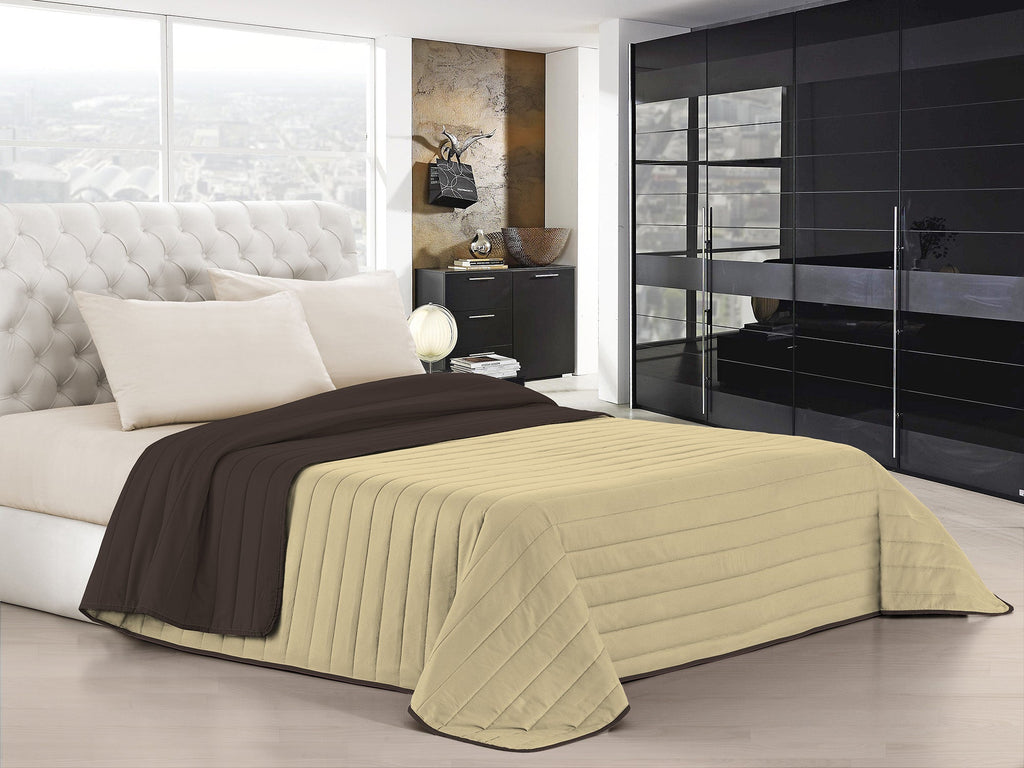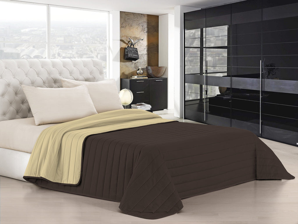 Einfarbige zweifarbige Steppdecke aus sehr weicher, hypoallergener Mikrofaser mit " Pfirsichhand "-Behandlung. Unsere Steppdecken waren schon immer ein Synonym für Qualität und Schönheit. Die Verwendung der besten Materialien und die hypoallergene Polsterung machen sie zu einem Produkt von höchster Qualität. Ultraweiche hypoallergene Mikrofaser einfarbig ( reversibel ) mit Behandlung, die ihr einen samtigen Griff verleiht und ihr ein größeres Wärmegefühl verleiht.