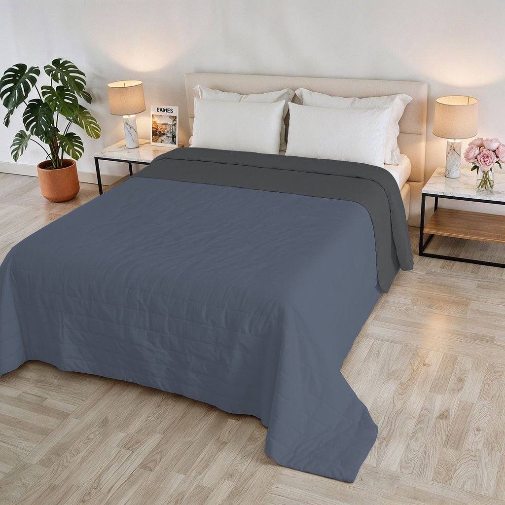 Trapuntino Estivo Double Face Effetto Water Washed in Poliestere Blu e Grigio Scuro Varie Misure