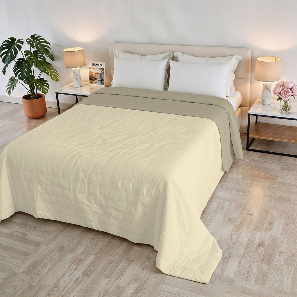 Trapuntino Estivo Double Face Effetto Water Washed in Poliestere Crema e Sabbia Varie Misure