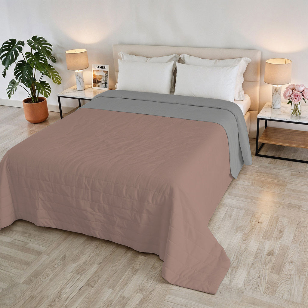 Trapuntino Estivo Double Face Effetto Water Washed in Poliestere Rosa Antico e Grigio Chiaro Varie Misure
