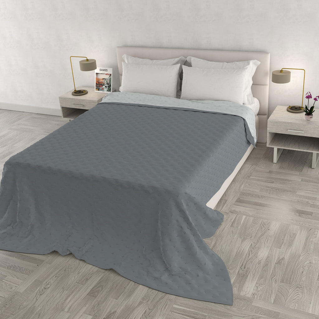 Trapuntino Estivo Effetto Water Washed in Microfibra Grigio Scuro e Grigio Chiaro Varie Misure
